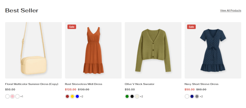 Enable “View all” button if collection has more products than shownA “View all” button appears and directs customers to the collection page if the collection contains more products than the Maximum products to show field allows.