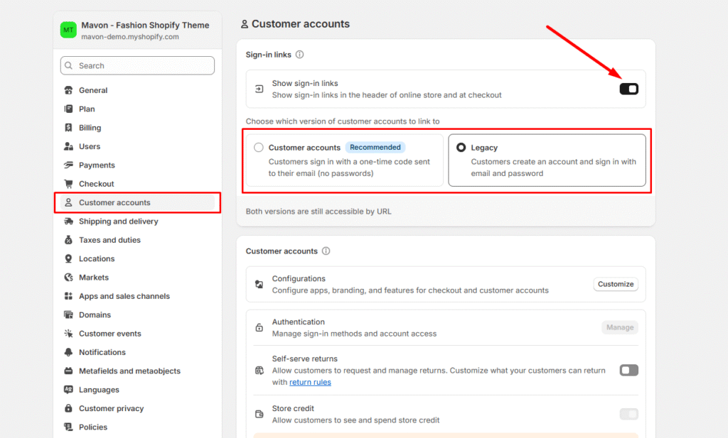 You can make customer accounts mandatory, optional, or disabled entirely. Customers are redirected to a separate account creation page when they create an account. Remember that requiring customers to create accounts may reduce sales conversions.