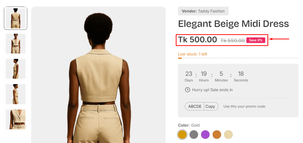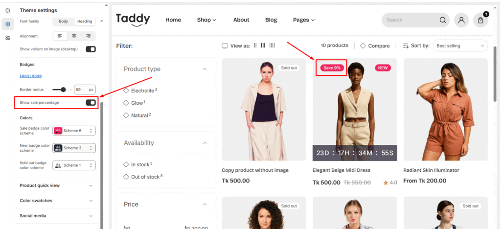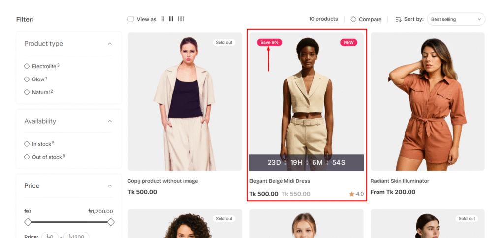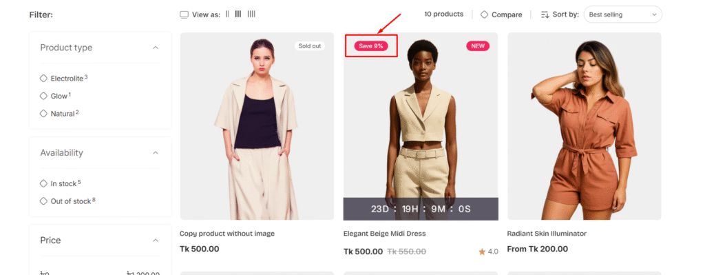 Your store has some products on sale, and you want to feature them on the website to attract more customers. With Mavon theme, you can create a sale badge to feature the promotional items.