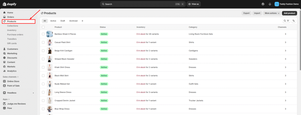 On your Shopify Admin dashboard, click Products & select the product to be featured with the promotion sale badge.