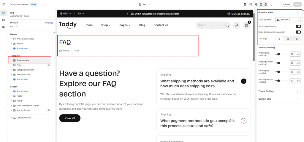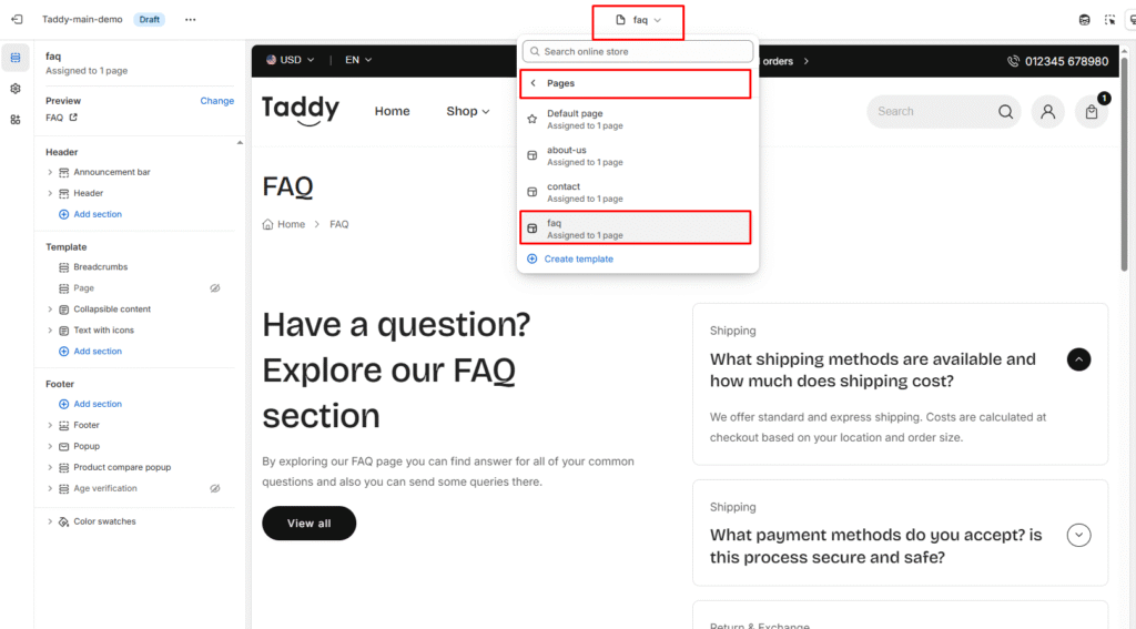 You can select FAQ page Sections > pages > faq