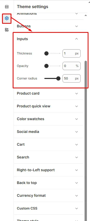 Customize the appearance of form fields, search bars, and input elements across your store.