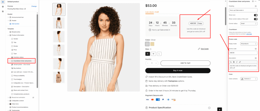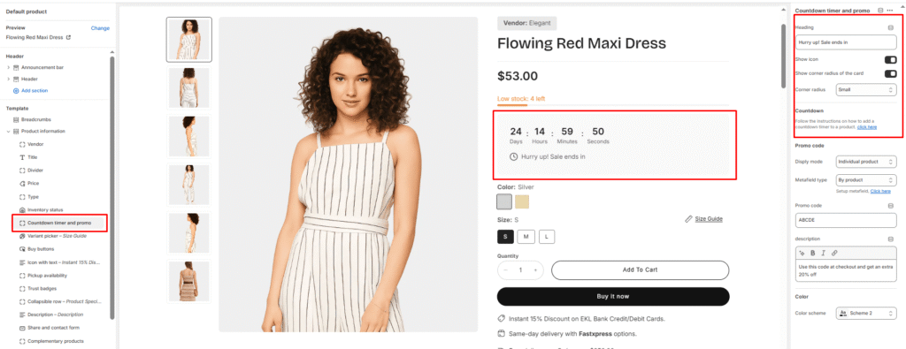IMPORTANT: You must need to configure a countdown metafield to display the countdown timer for a specific product. Learn more
