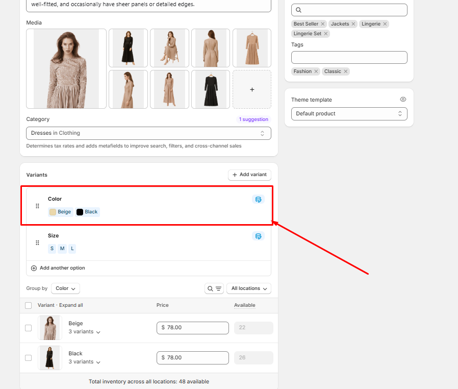 Enable color swatchesIf you enable it, Color variants are shown in swatches.