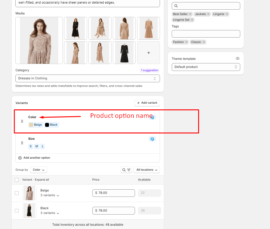 Option nameThis is a text field. To display the image in the variant, you must enter the same name as the product variant option name here,